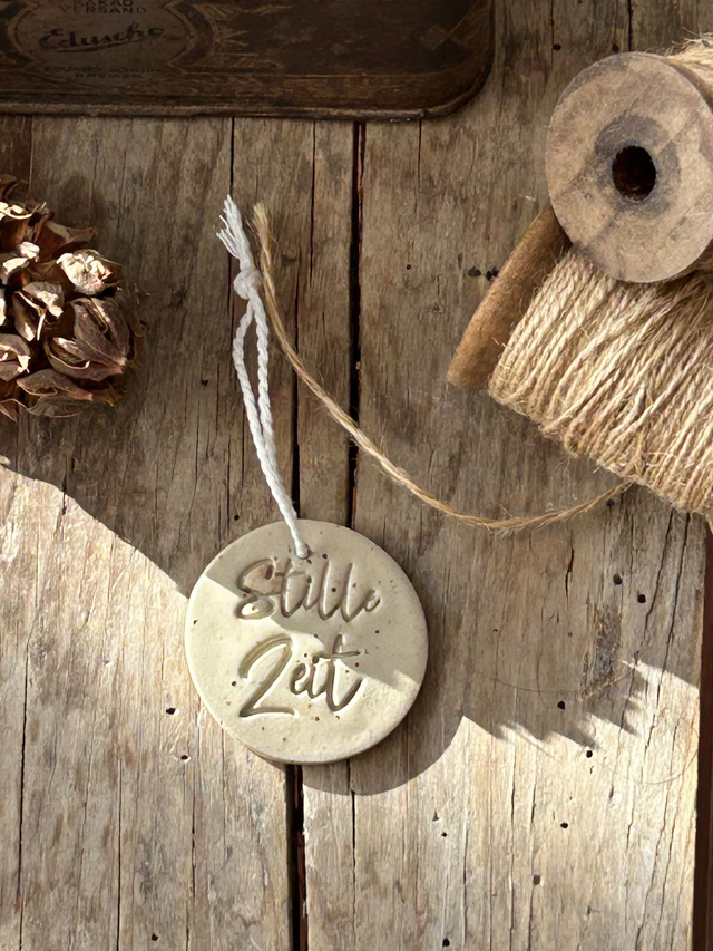 Emblem-Anhänger "Stille Zeit" - Farbe „strand-gut“ und „grün-gut“
